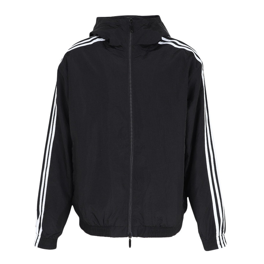 独特のシワ感(ワッシャー素材)が魅力の、軽快でスタイリッシュなリサイクルナイロン製フード付きジャケット。同素材のパンツと合わせたセットアップも可能。
