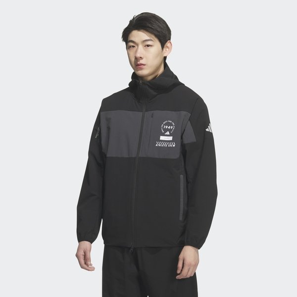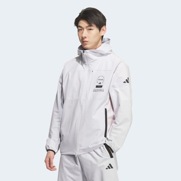 軽量性、耐久撥水性、ストレッチ性を兼ね備えたクロス素材のレギュラーフィットフルジップジャケット&パンツ。