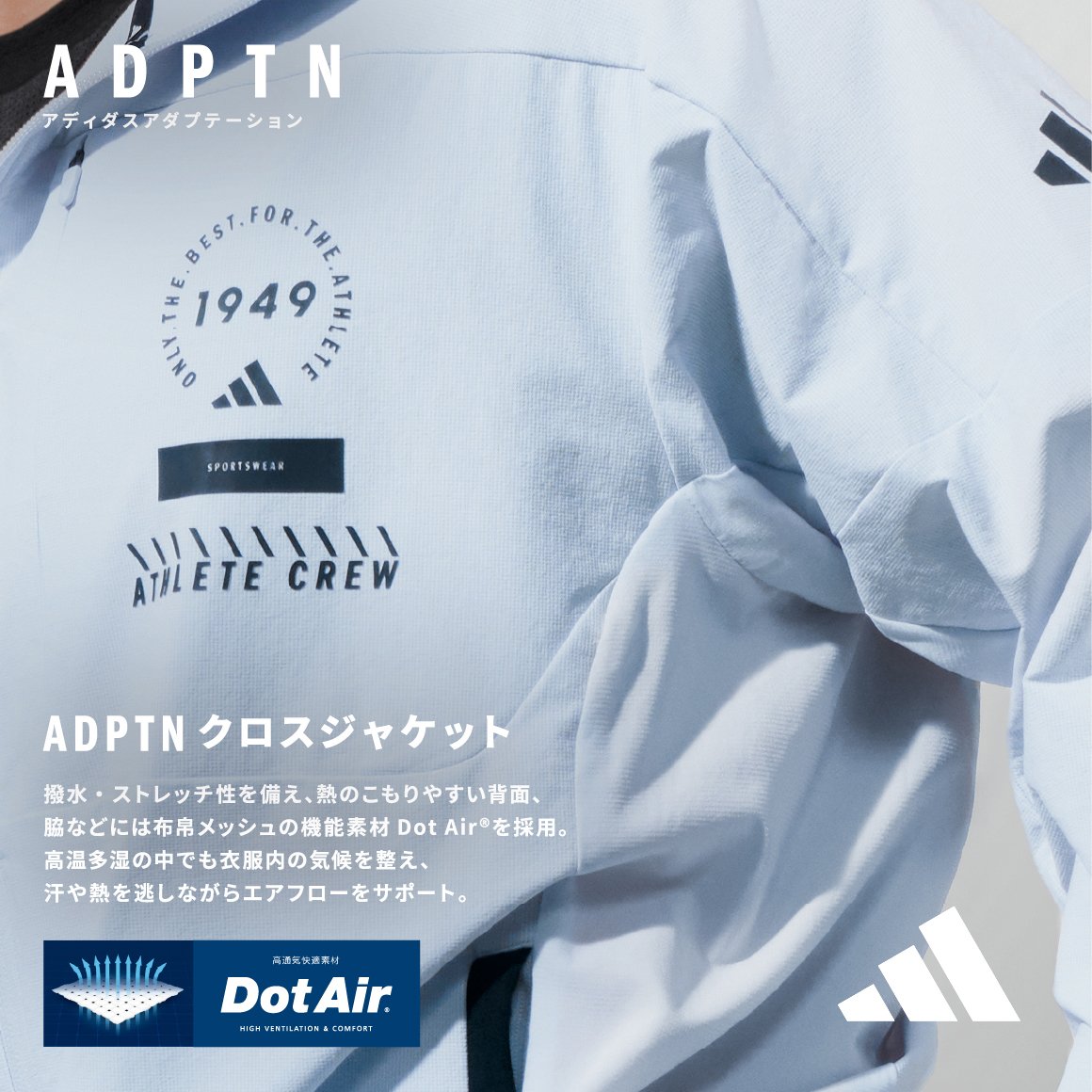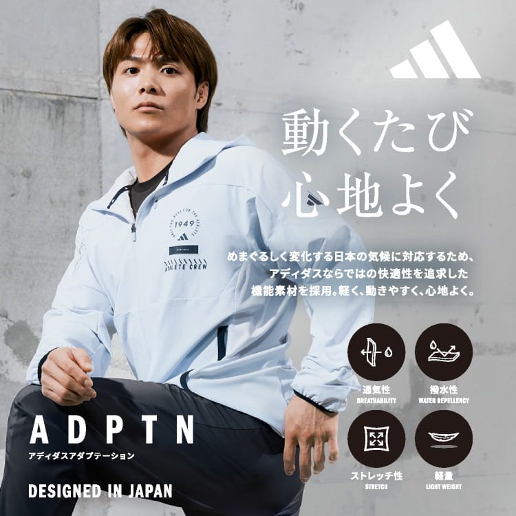 軽量性、耐久撥水性、ストレッチ性を兼ね備えたクロス素材のレギュラーフィットフルジップジャケット&パンツ。