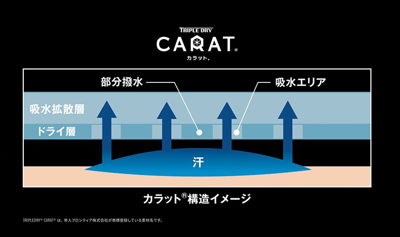 肌面に撥水糸を用いることで肌面に汗を残さず吸い上げ、不快な肌への張り付きを軽減する