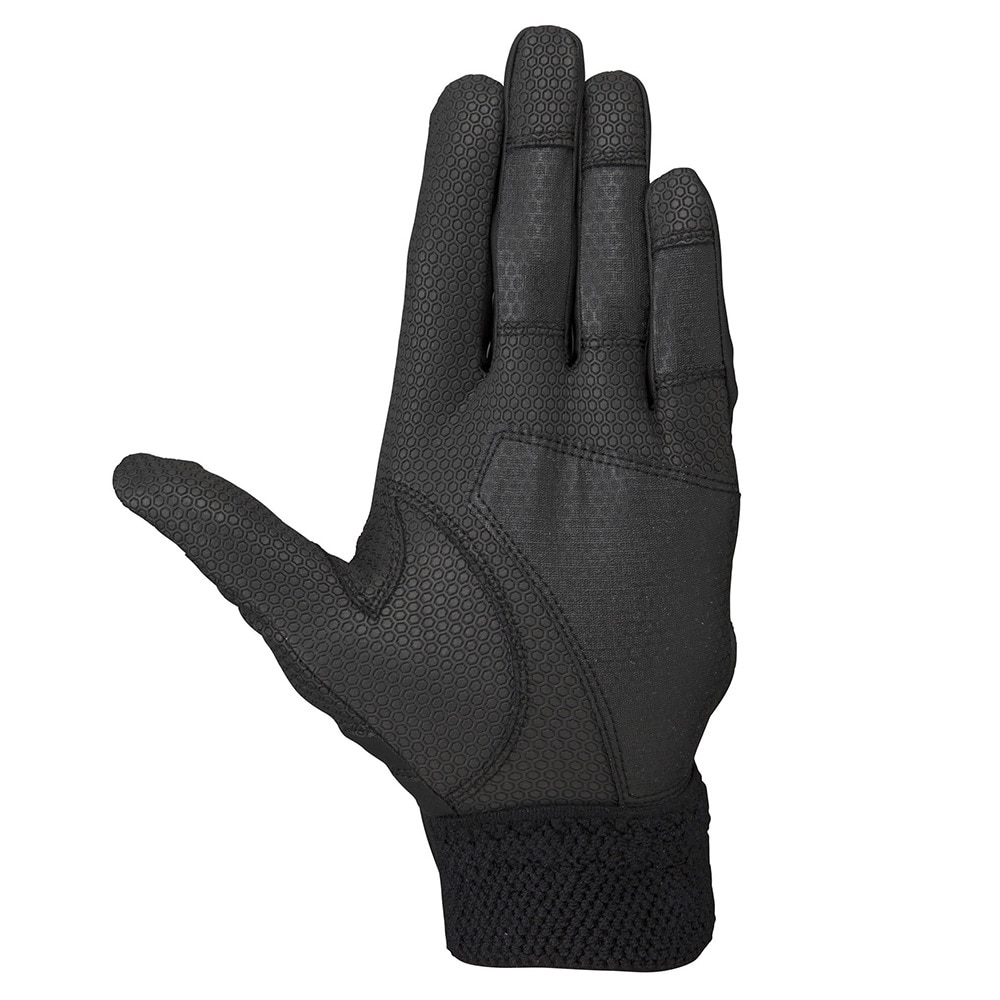 ●「伝わるPOWERモデル」高いグリップ力/密着性の実現:スイング時の力の流れ・強さを分析し、バットへ力を伝えるのに重要な「小指・薬指・中指」と「当て革部」に、表裏両面に高いグリップ力を誇る『特殊合成皮革』を採用。指部には、手袋の内側から当て縫製することで、グリップとの接地面のみならず、手袋内部へも高いグリップ力/密着性を与えます。