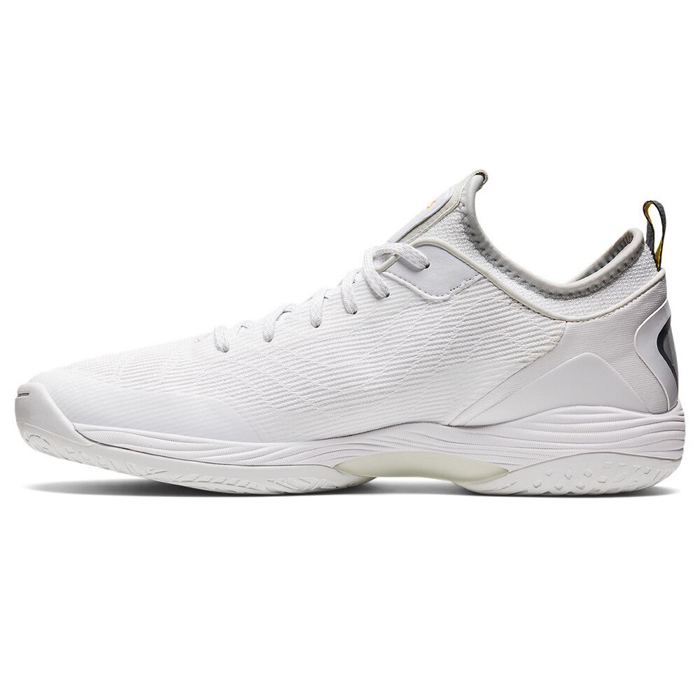 ●優れたフィット性で、動きやすく、足首部分のやわらかい履き心地が向上。また、ジャカードのアッパーがしっかりとフィットしてサポートすることで、足をしっかり固定し、バランスを保ちます。アウターソール中足部のTPU TRUSSTIC テクノロジーにより、安定性と推進力が向上。コートで素早くカットする時も、スピードを期待できます。