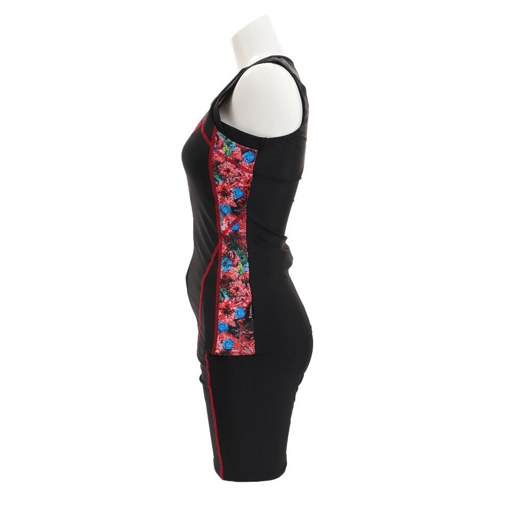リュウナ(Ryuna)(レディース)フィットネス水着 レディース 水泳 サイド花柄ノースリーブ GR2213FB RD