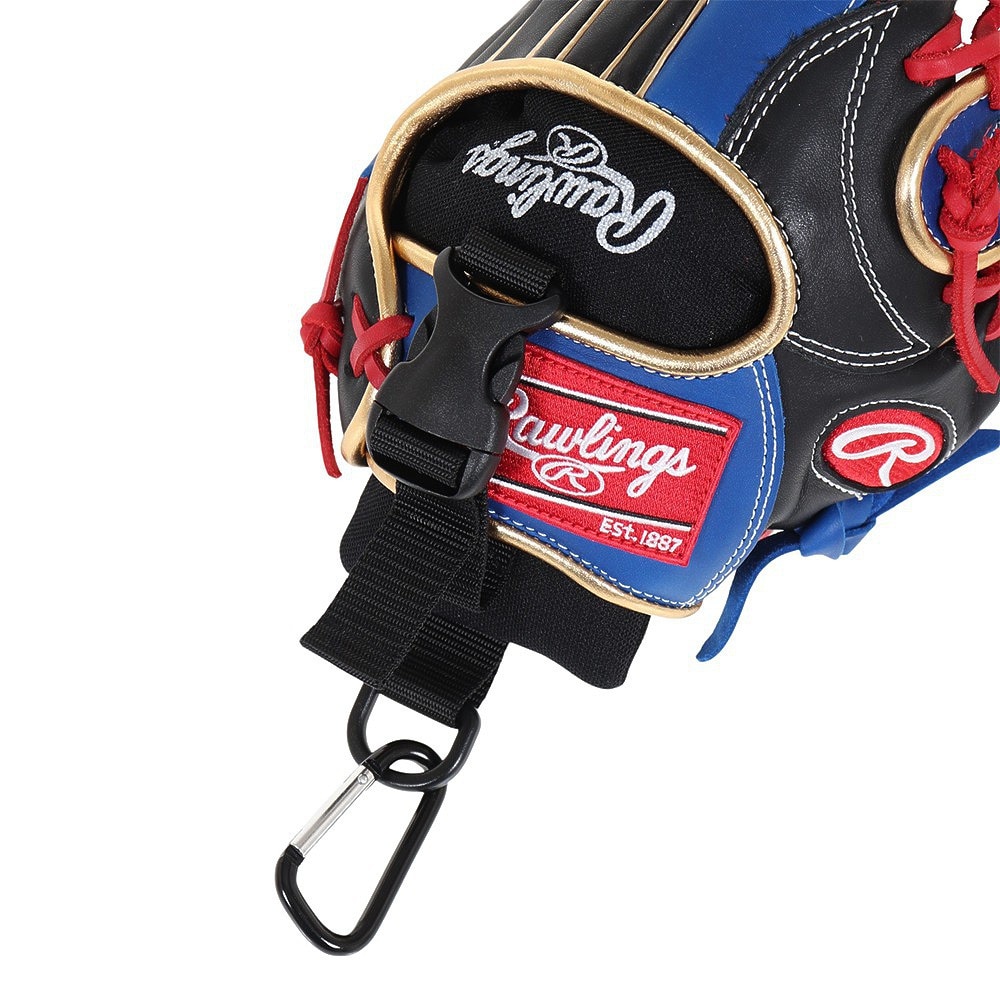 ●グラブ固定のバックル付きベルト(ベルト長さ調節可能)。