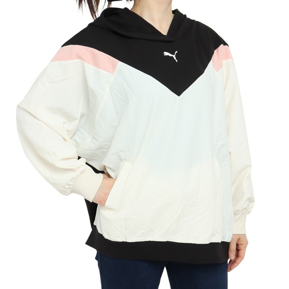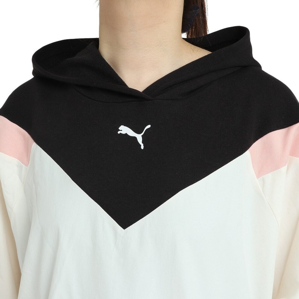 ●こなれ感のあるカラーデザインが印象的なスウェット。柔らかな丸みを帯びたシルエットで、カジュアルさの中に品の良さをプラスしました。フロントのプーマキャットプリントと切り替えのカラーリングがデザインのアクセントになっています。スポーツシーンのみならず、普段使いやルームウェアとしても大活躍間違いなしです。