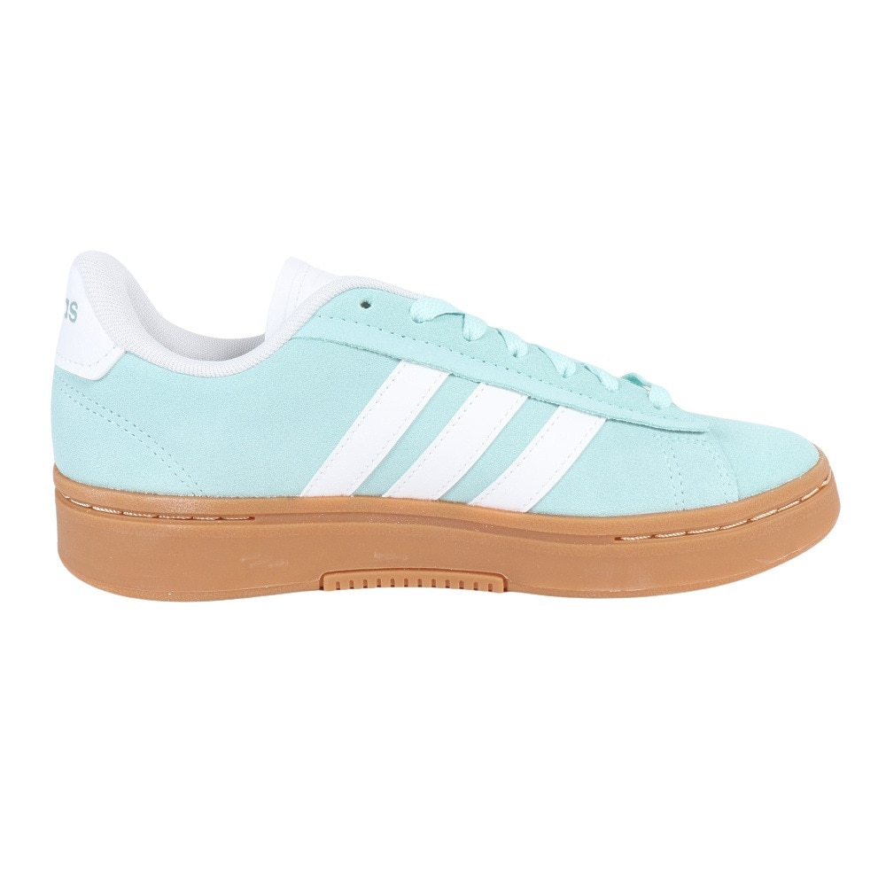 ●アイコニックなディテールとモダンなタッチを融合させた、クラシックでありながらコンテンポラリーなデザインのアディダス スニーカー。グランドコート アルファのシルエットを、ステッチを施したスリーストライプス、成型シュータン、切りっぱなしのエッジでトレンドセッター向けにアップデート。クッションの効いた軽い足取りをもたらすCloudfoamミッドソールを搭載した、ストリートやキャンパスを散策するのにぴったりのレトロスタイルの一足。