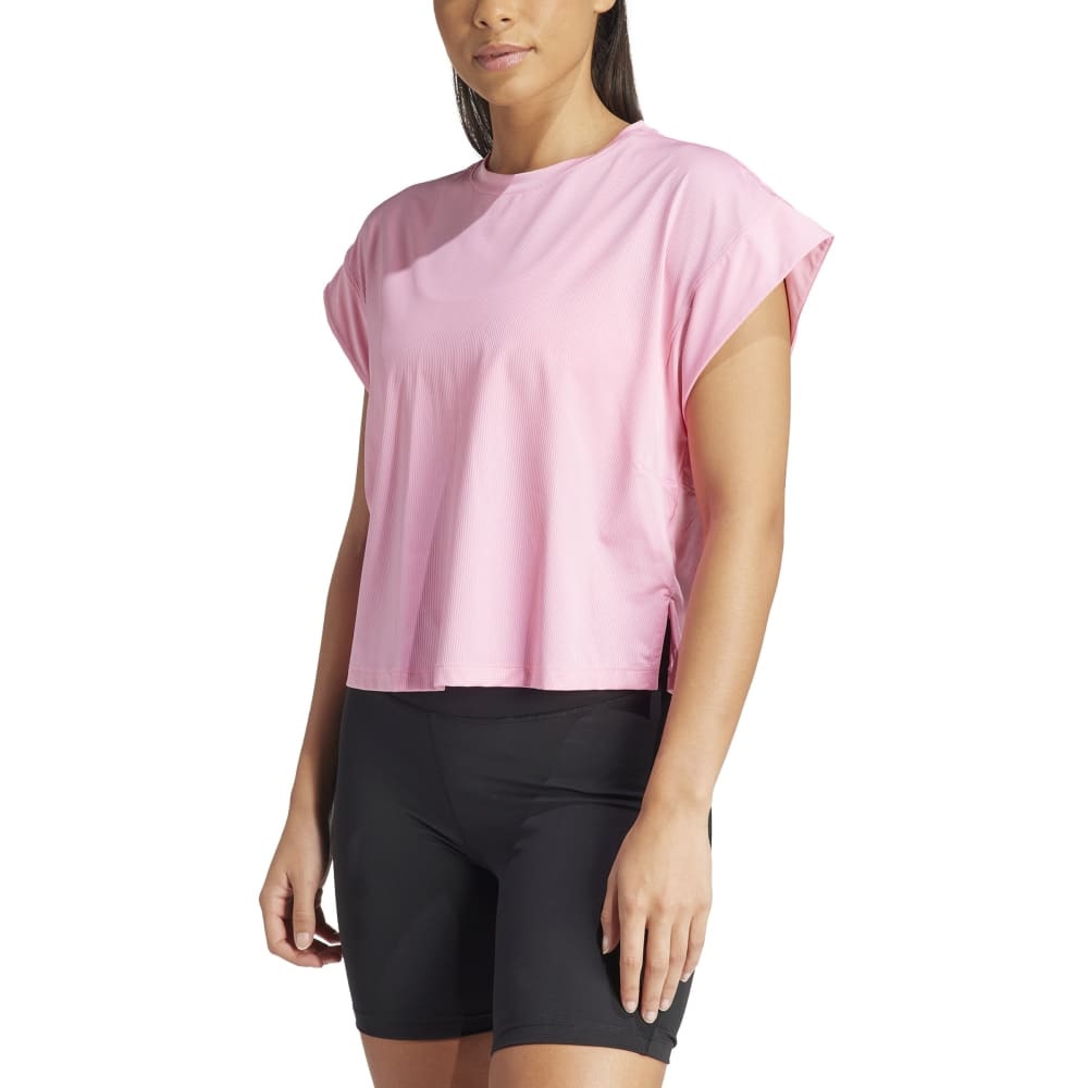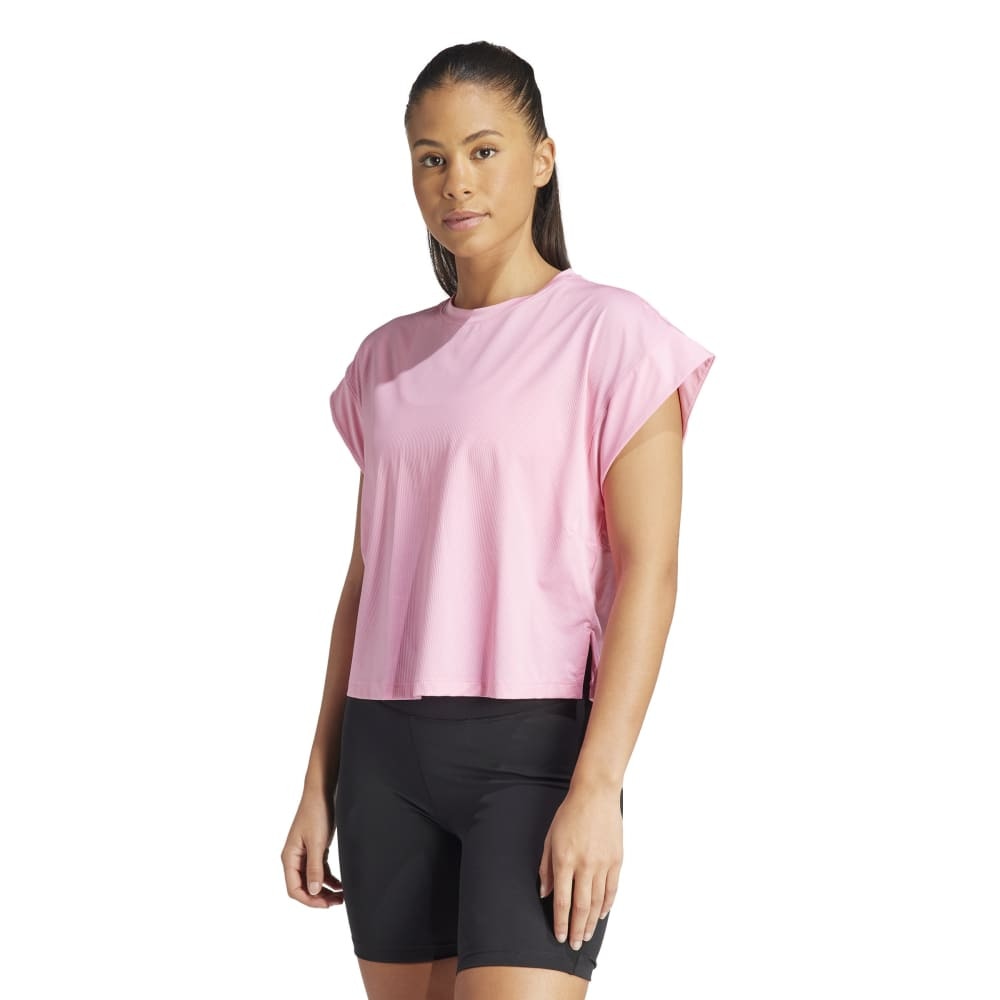 ●ヴィンヤサヨガ、バーエクササイズ、ピラティスなどに適した、あらゆる動きをサポートするTシャツ。バランスポーズや、同じ体勢を長くキープするときなどに、AEROREADYが汗を素早く吸収して身体をドライに保つ。フェミニンなカットラインとノースリーブを採用した、スポーティーかつスタイリッシュなデザインが魅力。