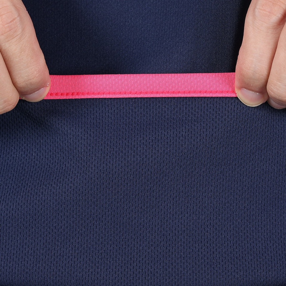 ●肌触りの良いセオドライ素材を採用し、大胆な切替でシャープに表現。