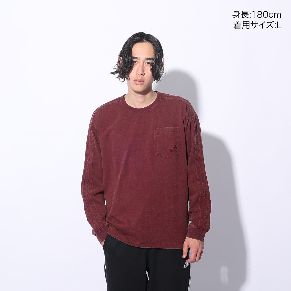 アディダス(adidas)(メンズ、レディース)スリーストライプス WASH ロングスリーブTシャツ KUE34-IT0888 ロンT 長袖 ヘビーウェイト ルーズフィット