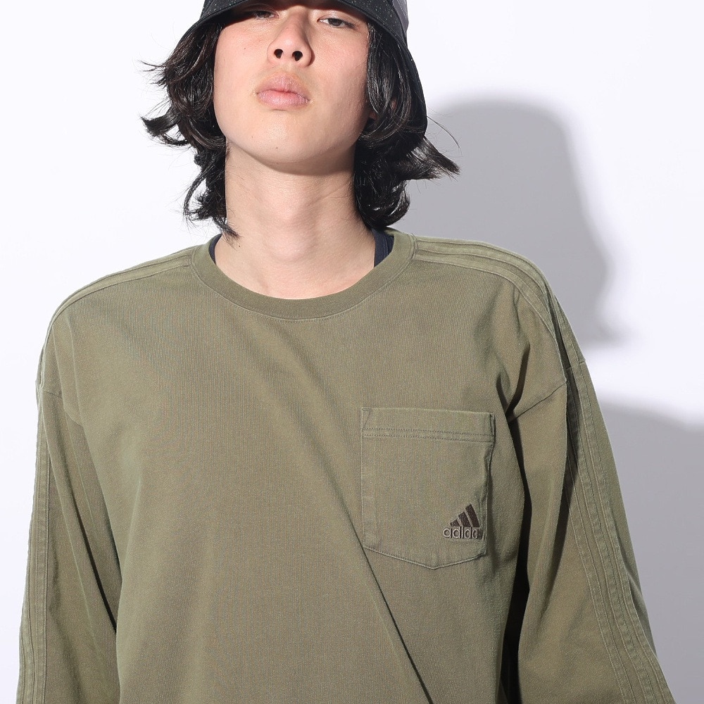 アディダス(adidas)(メンズ、レディース)スリーストライプス WASH ロングスリーブTシャツ KUE34-IT0889 ロンT 長袖 ヘビーウェイト ルーズフィット