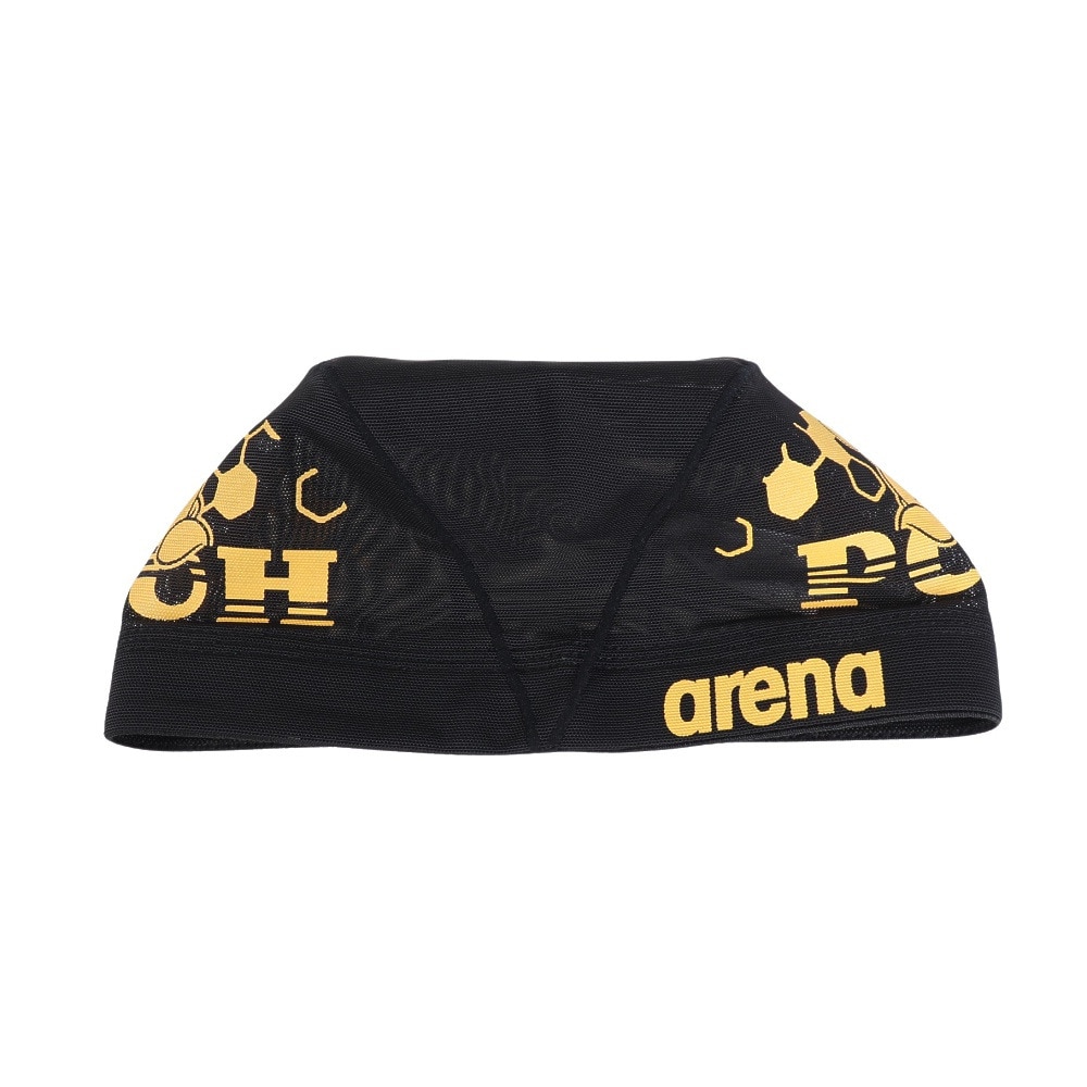 ●DISNEYデザインモデルのメッシュキャップ。メッシュキャップは、水抜けが良く、ハードなトレーニング中でもムレ感なく、快適に泳ぐことができます。はちみつが大好きな「プーさん」に合わせて、ハチの巣をポイントとしたラバーブリントデザインです。連動デザインの水着とプルーフバッグとのコーディネートもおすすめです。