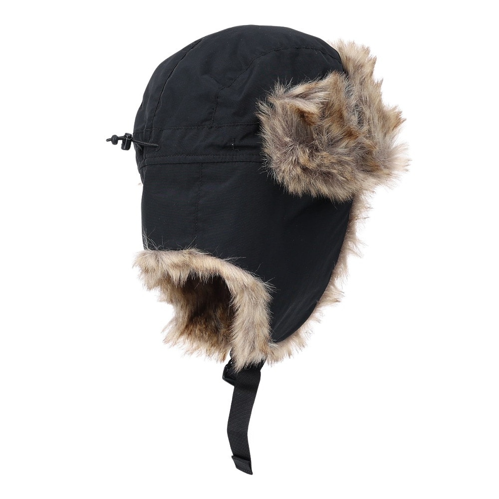 ●耳当て内側に毛足の長いフェイクファー生地を使用し、さらに中綿を入れることで防寒性を高めたフライトキャップです。