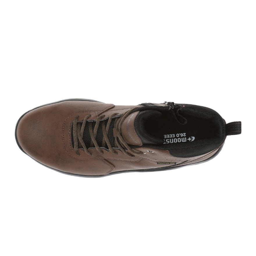 ●ムーンスターのメンズスニーカーです。雪道や凍った路面でも滑りにくい、高性能の防滑ソールを搭載したウィンターシューズです。「4cm4時間防水」機能と、凍った路面でも高いグリップ性能を発揮する「ファンクショングリップ」ソールの搭載で、ウィンターシーズンを快適にサポートします。着脱に便利な内側ファスナー付きです。ヒールの高さは5.0cm。