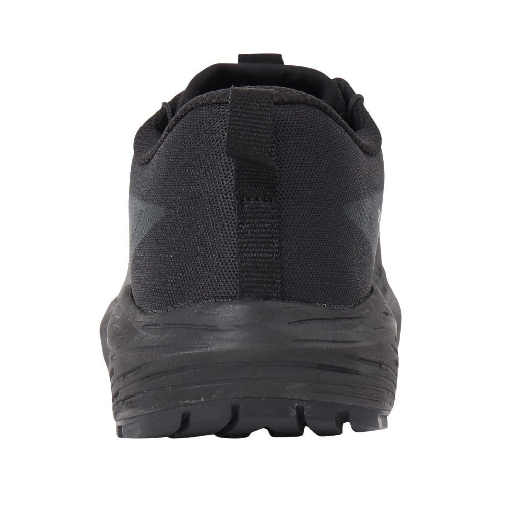 ●ここの色が落ち着いた配色だったら…。ロゴや製品名がもっと目立たなければ…。普段履きとしてのスペックを十二分に満たすトレイルランニングシューズの唯一気になるポイントが、カラーやデザインではないでしょうか。SENSE RIDE 5 SRはそんな需要を満たす、ブラックカラーをベースとしたデザインの普段履き、一般作業、業務用シューズとしての着用もおすすめの一足です。機能面でも、ベースのSENSE RIDE 5の履き心地はそのままに、インドアの床でも滑りにくいアウトソールとなっています。