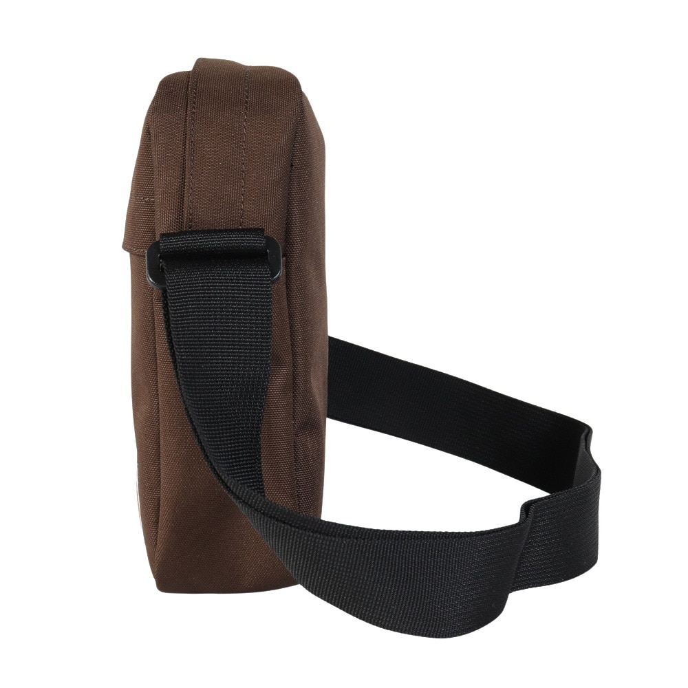 ●ジェイクショルダーポーチは、撥水加工を施したリサイクルポリエステルキャンバス製です。裏地は付いていません。ジッパー付きのメインコンパートメントとフロントポケット、インナーメッシュポケットを装備しています。調節可能なショルダーストラップと、Carhartt WIPスクエアラベルがデザインにアクセントをつけています。