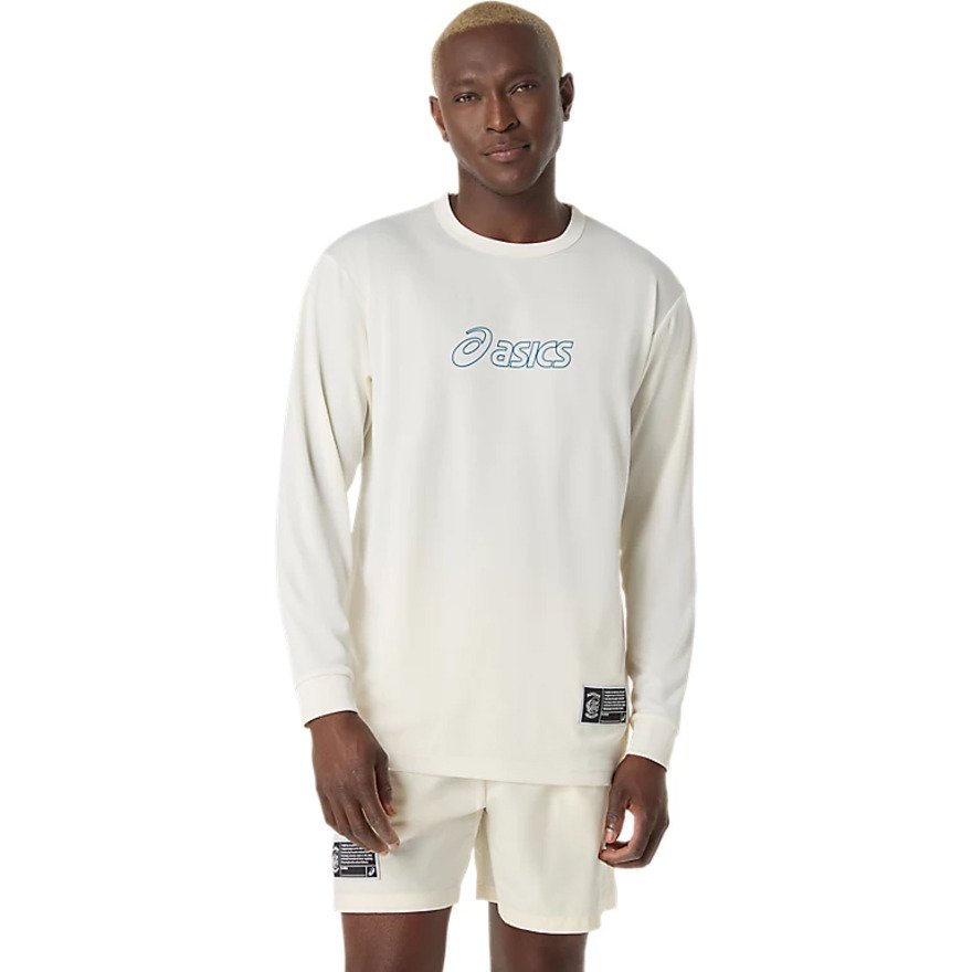 ●前面にASICSロゴ、背面にMIDTOWN KRAKENSのマークが印刷された長袖シャツ。オリジナルのピスネームを左裾部分に縫い付け