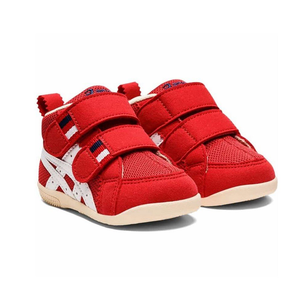 ●歩きはじめの約3カ月間の赤ちゃん向けに展開する「FIRST」シリーズのキッズシューズ。つま先を大きく巻き上げる形状でつまずきにくくし、スムーズな歩行をサポートします。さらに靴底全体のエッジを丸くすることで、ぐらつきやすい赤ちゃんの歩行で起こりがちな引っかかりも軽減。足に触れるインナー材には、吸汗速乾性にすぐれ、肌に優しい低刺激性の素材「メディエル」を採用しています。フィット感の調節がしやすい2本ベルトで、履き口が大きく開くため脱ぎ履きもしやすいです。